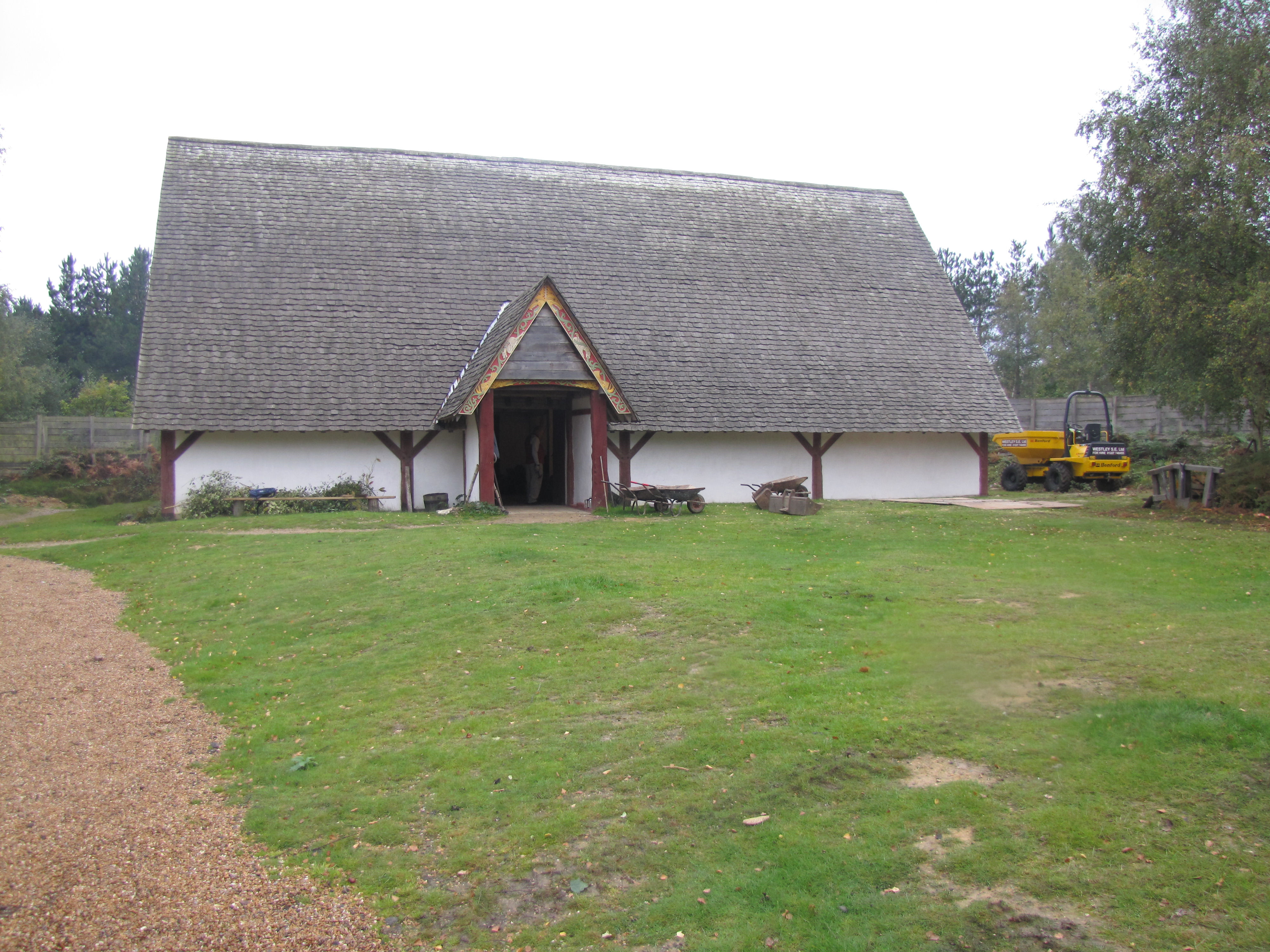 Wychurst is a fortified English manor—properly, a Manorial Burgh. A ditch-and-bank wooden palisade encloses an acre, at the heart of which is the Longhall. It dominates the tree-girt enclosure and the sheer scale of the building just takes your breath away. Mainly paid for by fees gained from events and filmwork, the work has been provided by members of the society themselves, who gen eral show up for work weekends every month.