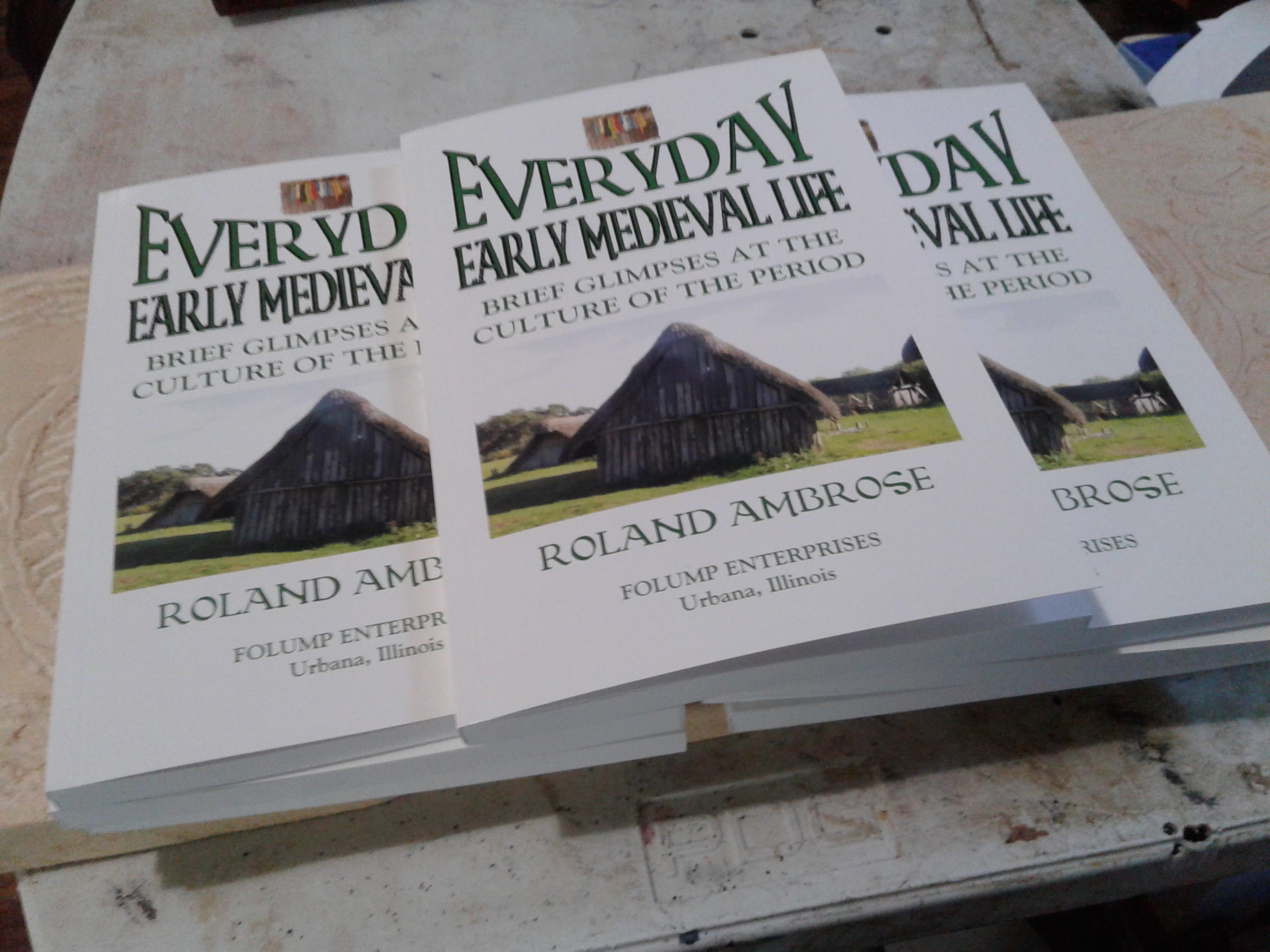 Roland Ambrose. Everyday Early Medieval Life , containing revised, corrected and enlarged reprints of the previously published chapbooks: Not an Anchor but a Mast, Luxuries of the Long House, Drink Until the Tables Are Cleared and Let the Sea-Serpent’s Couch Slip out of Your Pouch. Folump Enterprises; $20. https://www.etsy.com/listing/1059818789/everyday-early-medieval-life?ref=shop_home_active_1&fbclid=IwAR3OJ43aZuemVl3iQ1_hoVTrnhgDqQp86Vet0LdR9acCtaQg-E-YbjXzyrM